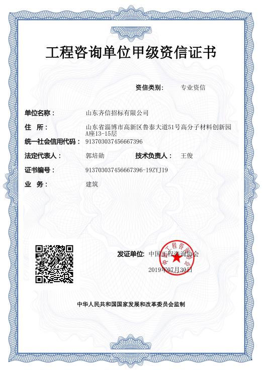 山東齊信招標(biāo)有限公司通過(guò)了本次評(píng)價(jià)的審核,取得了工程咨詢單位甲級(jí)專業(yè)資信證書,期間凝聚了公司領(lǐng)導(dǎo)的支持與關(guān)懷、相關(guān)部門的協(xié)作與進(jìn)取、組織人員的認(rèn)真與詳實(shí),團(tuán)結(jié)就是力量在我們齊信大家庭中體現(xiàn)的淋漓盡致。此次成績(jī)的取得彰顯了公司在國(guó)內(nèi)同行中的較高水平!