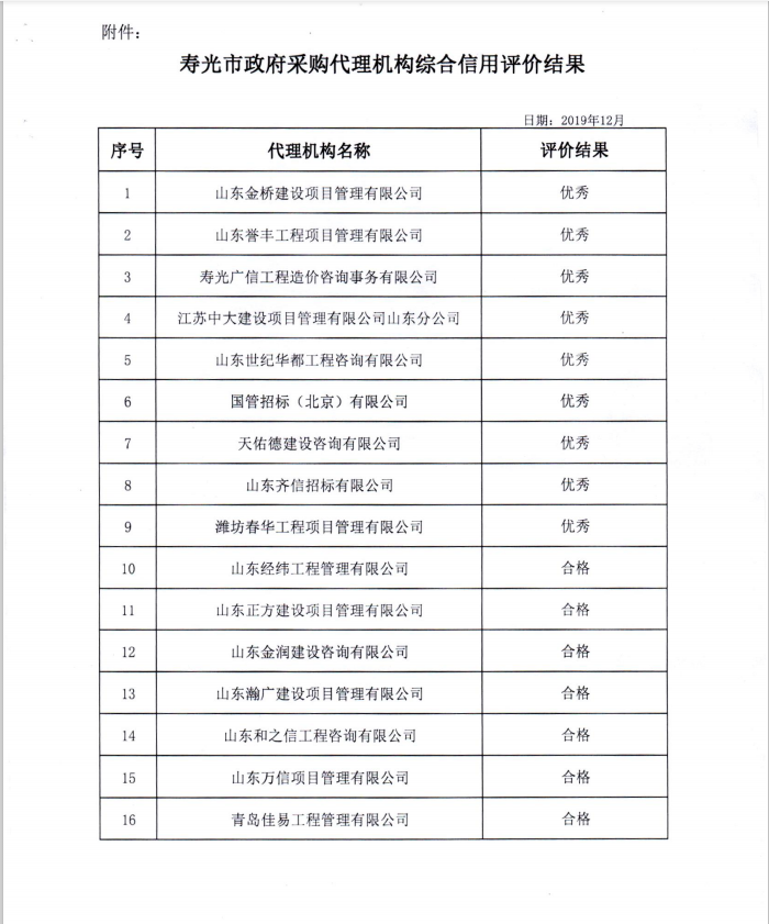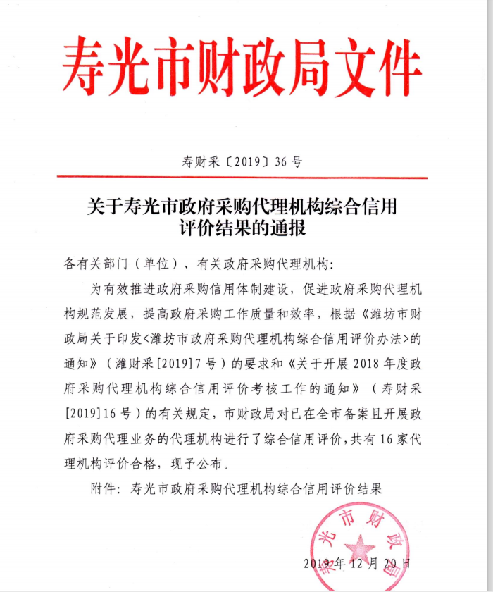 日前,壽光財政局開展了壽光市政府采購代理機構(gòu)綜合信用評價工作,經(jīng)過筆試等評審環(huán)節(jié)后,我公司獲得優(yōu)秀等級。榮譽的取得既是對公司的肯定,也是對公司的鞭策,我們公司將繼續(xù)秉承齊信公司“好服務(wù),為卓越”的服務(wù)理念,進(jìn)一步提高從業(yè)人員的專業(yè)技能水平,為推動招標(biāo)代理行業(yè)持續(xù)健康發(fā)展做出更大貢獻(xiàn)。
