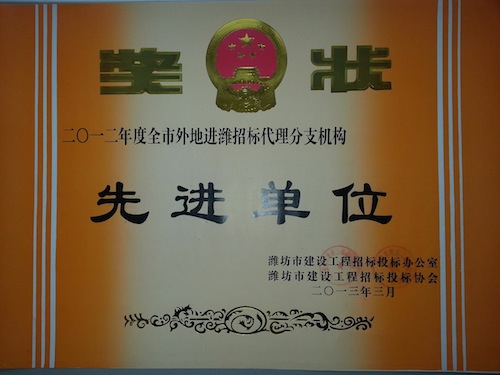 最近,在濰坊市建設(shè)工程招標(biāo)投標(biāo)協(xié)會組織的2012年度先進單位和個人評選活動中,我公司濰坊分公司榮獲“2012年度全市外地進濰招標(biāo)代理分支機構(gòu)先進單位”稱號,高偉九同志被評為“2012年度全市招標(biāo)代理工作先進個人”。這是濰坊市建設(shè)工程招標(biāo)投標(biāo)辦公室與建設(shè)工程招標(biāo)投標(biāo)協(xié)會根據(jù)2012年度招標(biāo)代理機構(gòu)定期考核結(jié)果和實際工作情況評選的,全市共評出8家單位為外地進濰招標(biāo)先進分支機構(gòu)。