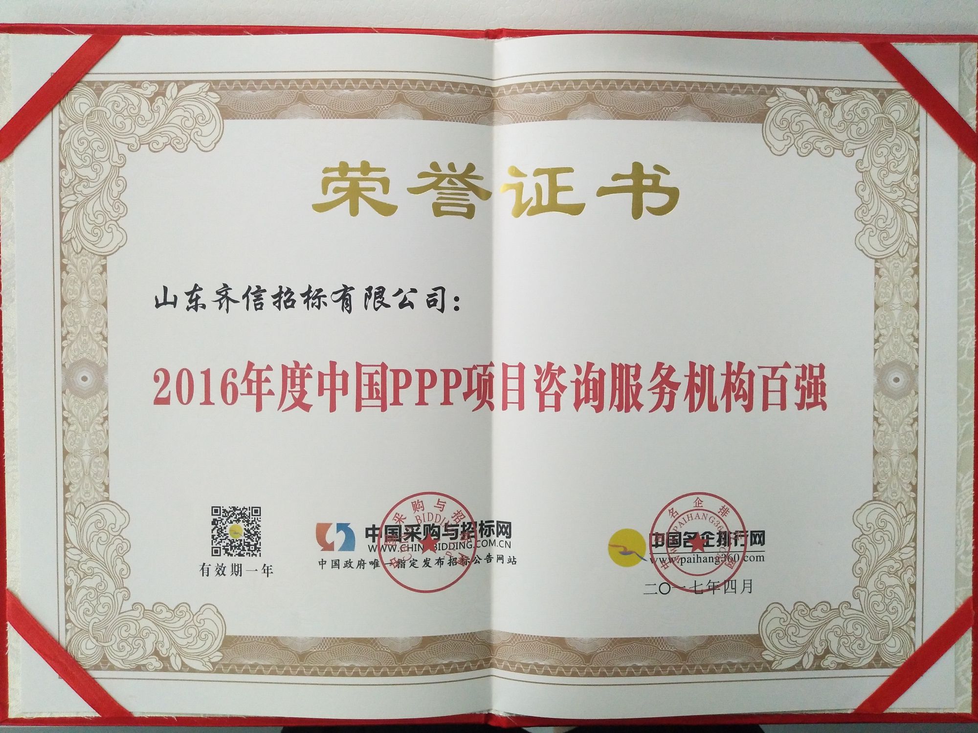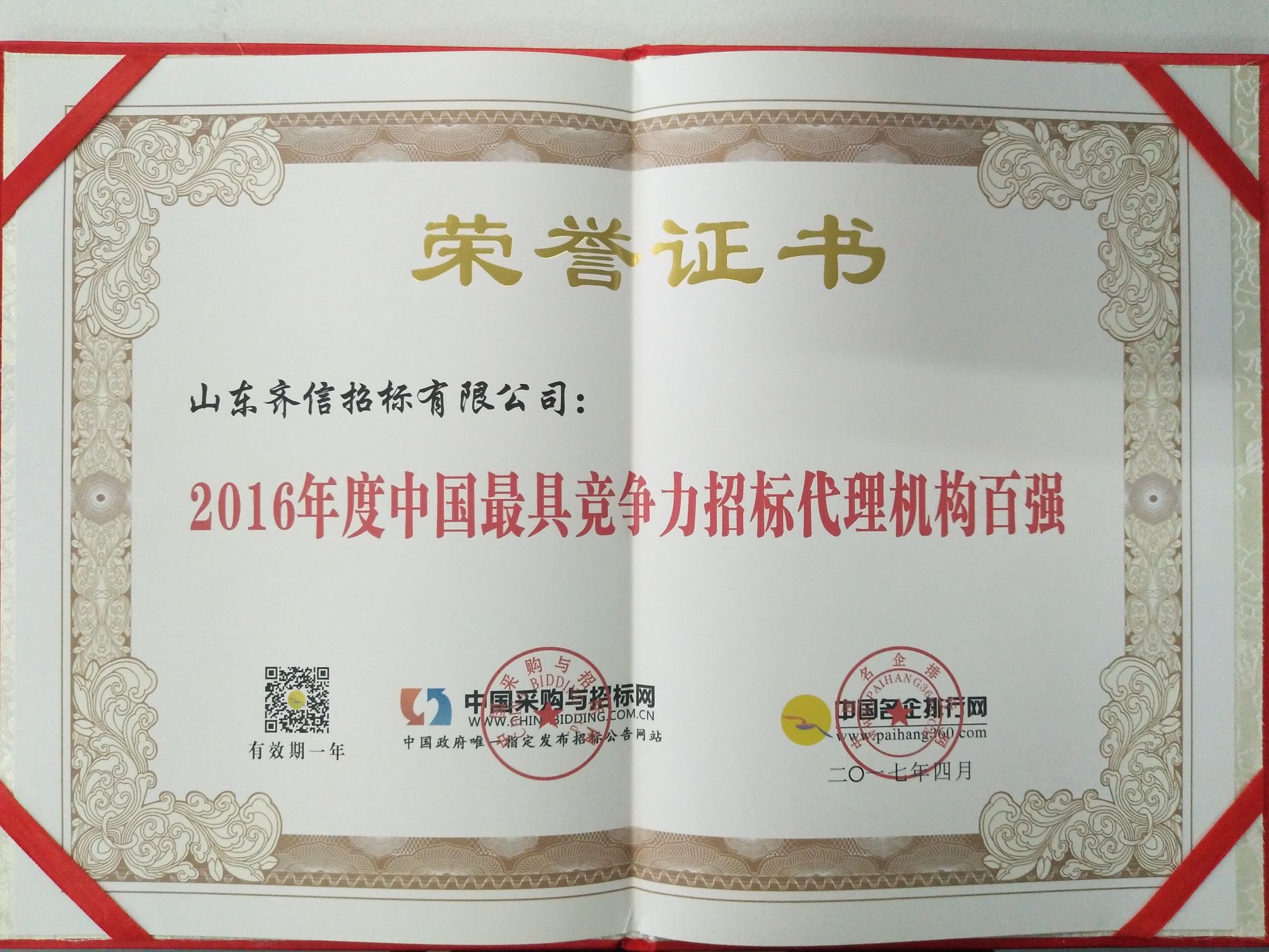 日前, 2016年度中國最具競爭力招標(biāo)機(jī)構(gòu)百強(qiáng)及2016年度中國PPP項目咨詢服務(wù)機(jī)構(gòu)百強(qiáng)在京正式揭曉,山東齊信招標(biāo)有限公司分別位列第29名和第30名。