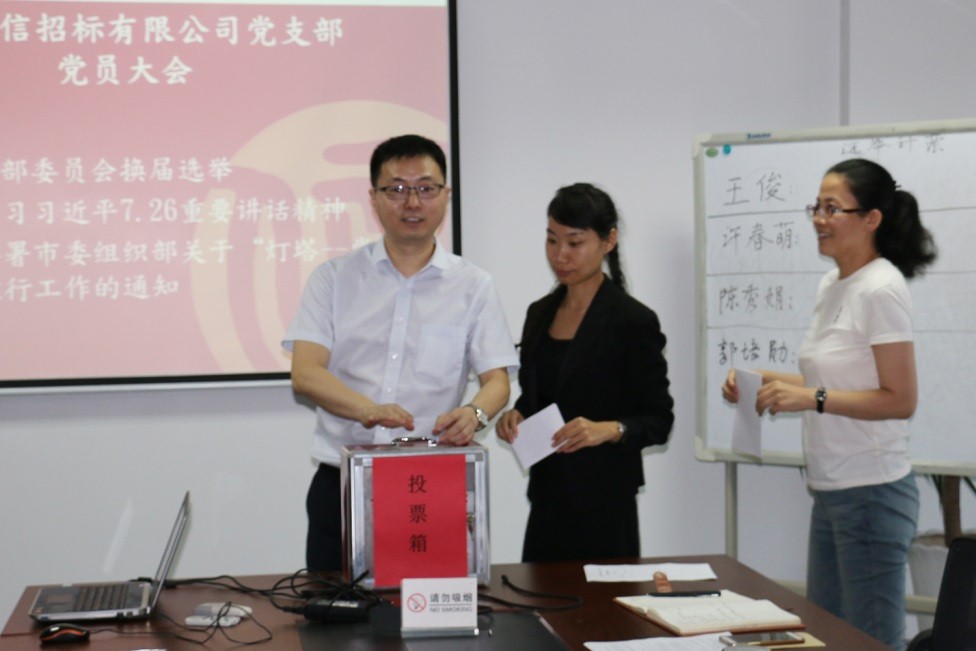 為進(jìn)一步強(qiáng)化基層黨組織凝聚力,提升基層黨組織戰(zhàn)斗力,充分發(fā)揮基層黨組織的黨員先鋒模范作用,中共山東齊信招標(biāo)有限公司支部根據(jù)《中國(guó)共產(chǎn)黨章程》等規(guī)定要求,于2017年8月18日下午組織開(kāi)展了黨支部換屆工作,為從嚴(yán)治黨專項(xiàng)行動(dòng)組織建設(shè)奠定了良好基礎(chǔ),將有力推動(dòng)從嚴(yán)管黨治黨責(zé)任在基層落實(shí)。