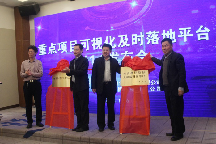 2018年1月26日,山東信啟信息科技有限公司(以下簡稱信啟)重點(diǎn)項(xiàng)目可視化及時(shí)落地平臺(tái)發(fā)布會(huì)暨投資建設(shè)項(xiàng)目大數(shù)據(jù)研究中心揭牌儀式在唐莊酒店舉行。齊魯工業(yè)大學(xué)金融學(xué)院院長徐如志、淄博市服務(wù)業(yè)辦公室主任路玉田、淄博市重點(diǎn)項(xiàng)目辦公室主任王其華、淄博高新區(qū)經(jīng)發(fā)局局長雷兆河、山東淄川經(jīng)濟(jì)開發(fā)區(qū)經(jīng)濟(jì)發(fā)展招商局局長滿亮遠(yuǎn)等嘉賓出席。